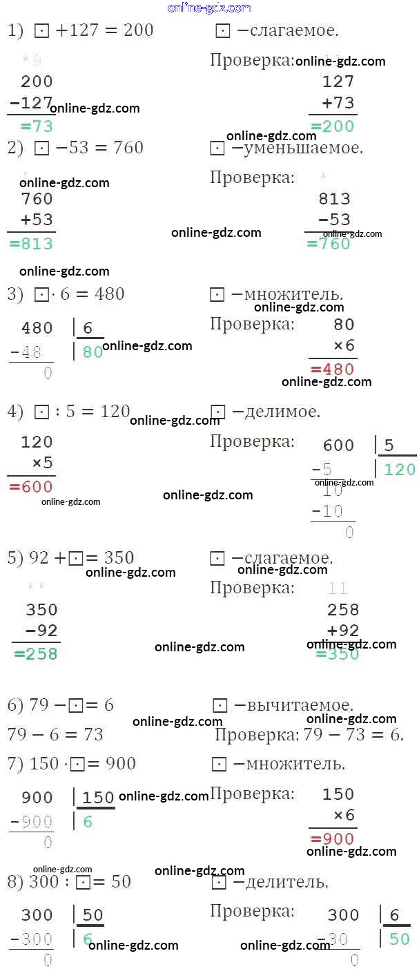 Нахождение неизвестного числа в равенстве вида 8+x=16, 8*x=16, 8-x=2, 8/x=2