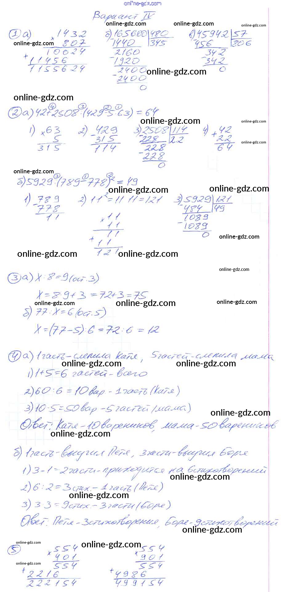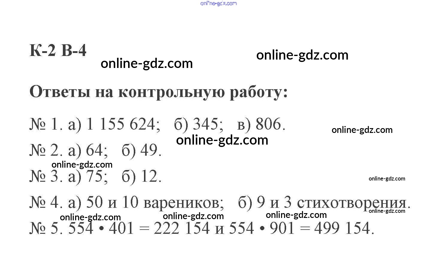 Готовые домашние задания по Математике за 5 класс Дидактические материалы Потапов, Шевкин МГУ - школе 2017 - КР-2. Варианты Контрольные работы 4