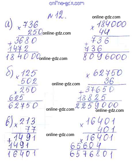Готовые домашние задания по Математике за 5 класс Дидактические материалы Кузнецова, Минаева Академический школьный учебник 2014 - О-11. Умножение Обучающие работы 12