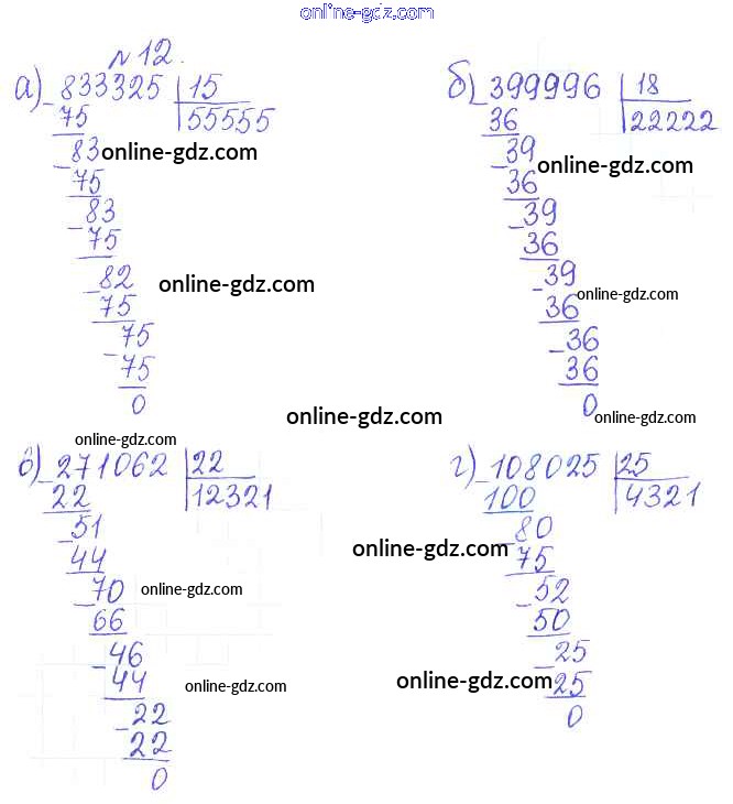 Готовые домашние задания по Математике за 5 класс Дидактические материалы Кузнецова, Минаева Академический школьный учебник 2014 - О-12. Деление Обучающие работы 12