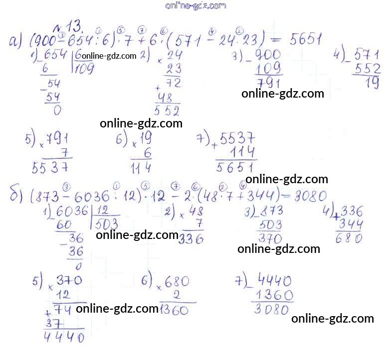 Готовые домашние задания по Математике за 5 класс Дидактические материалы Кузнецова, Минаева Академический школьный учебник 2014 - О-16. Порядок действий Обучающие работы 13