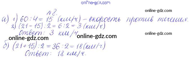 Готовые домашние задания по Математике за 5 класс Дидактические материалы Кузнецова, Минаева Академический школьный учебник 2014 - О-19. Решение задач на движение по реке Обучающие работы 8