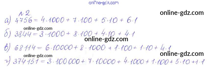 Готовые домашние задания по Математике за 5 класс Дидактические материалы Кузнецова, Минаева Академический школьный учебник 2014 - О-2. Представление числа в виде суммы разрядных слагаемых Обучающие работы 2