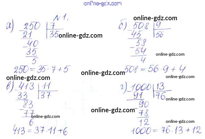 Готовые домашние задания по Математике за 5 класс Дидактические материалы Кузнецова, Минаева Академический школьный учебник 2014 - О-26. Деление с остатком Обучающие работы 1