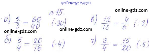 Готовые домашние задания по Математике за 5 класс Дидактические материалы Кузнецова, Минаева Академический школьный учебник 2014 - О-28. Приведение дробей к новому знаменателю. Сокращение дробей Обучающие работы 15