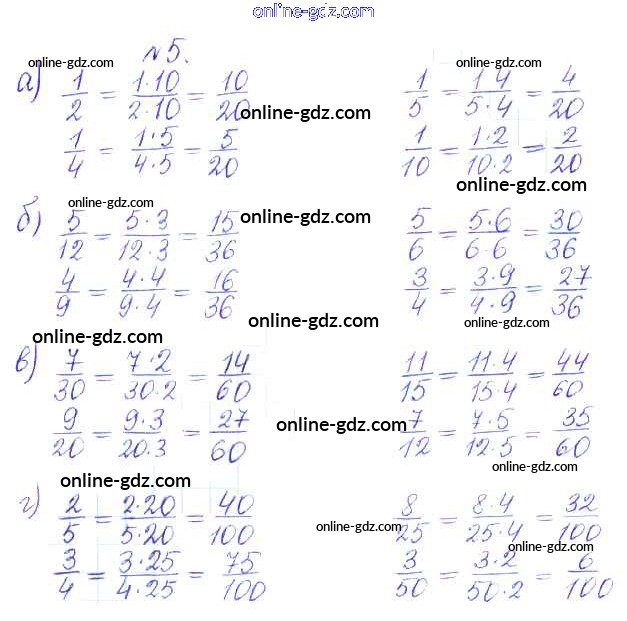 Готовые домашние задания по Математике за 5 класс Дидактические материалы Кузнецова, Минаева Академический школьный учебник 2014 - О-28. Приведение дробей к новому знаменателю. Сокращение дробей Обучающие работы 5