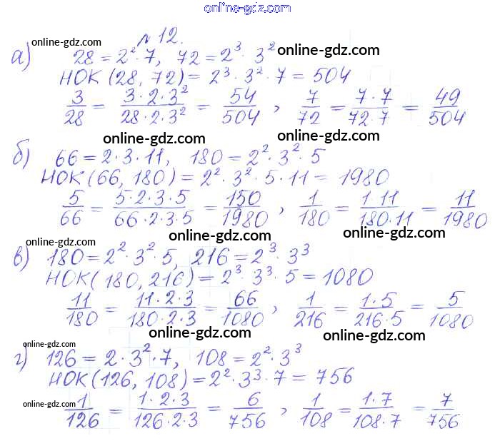 Готовые домашние задания по Математике за 5 класс Дидактические материалы Кузнецова, Минаева Академический школьный учебник 2014 - О-29. Приведение дробей к общему знаменателю Обучающие работы 12