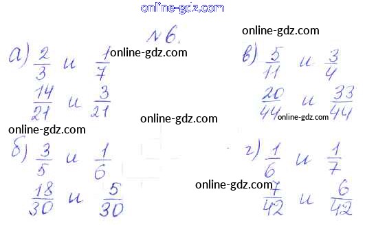 Готовые домашние задания по Математике за 5 класс Дидактические материалы Кузнецова, Минаева Академический школьный учебник 2014 - О-29. Приведение дробей к общему знаменателю Обучающие работы 6