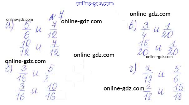 Готовые домашние задания по Математике за 5 класс Дидактические материалы Кузнецова, Минаева Академический школьный учебник 2014 - О-29. Приведение дробей к общему знаменателю Обучающие работы 7