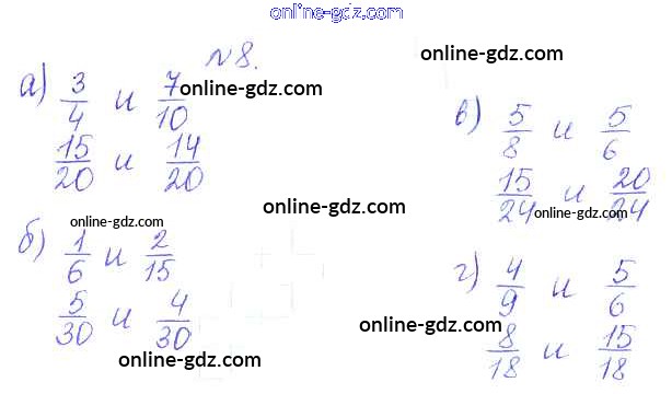 Готовые домашние задания по Математике за 5 класс Дидактические материалы Кузнецова, Минаева Академический школьный учебник 2014 - О-29. Приведение дробей к общему знаменателю Обучающие работы 8