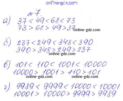 Готовые домашние задания по Математике за 5 класс Дидактические материалы Кузнецова, Минаева Академический школьный учебник 2014 - О-3. Сравнение натуральных чисел Обучающие работы 7