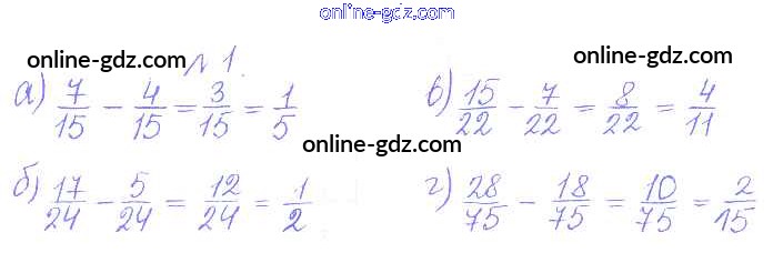 Готовые домашние задания по Математике за 5 класс Дидактические материалы Кузнецова, Минаева Академический школьный учебник 2014 - О-33. Вычитание дробей Обучающие работы 1