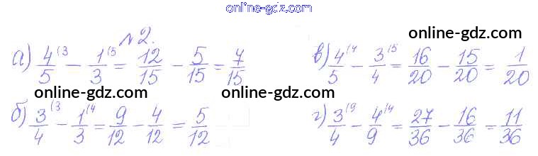Готовые домашние задания по Математике за 5 класс Дидактические материалы Кузнецова, Минаева Академический школьный учебник 2014 - О-33. Вычитание дробей Обучающие работы 2