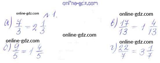 Готовые домашние задания по Математике за 5 класс Дидактические материалы Кузнецова, Минаева Академический школьный учебник 2014 - О-34. Выделение целой части из неправильной дроби. Представление смешанной дроби в виде неправильной дроби Обучающие работы 1