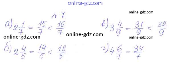 Готовые домашние задания по Математике за 5 класс Дидактические материалы Кузнецова, Минаева Академический школьный учебник 2014 - О-34. Выделение целой части из неправильной дроби. Представление смешанной дроби в виде неправильной дроби Обучающие работы 7