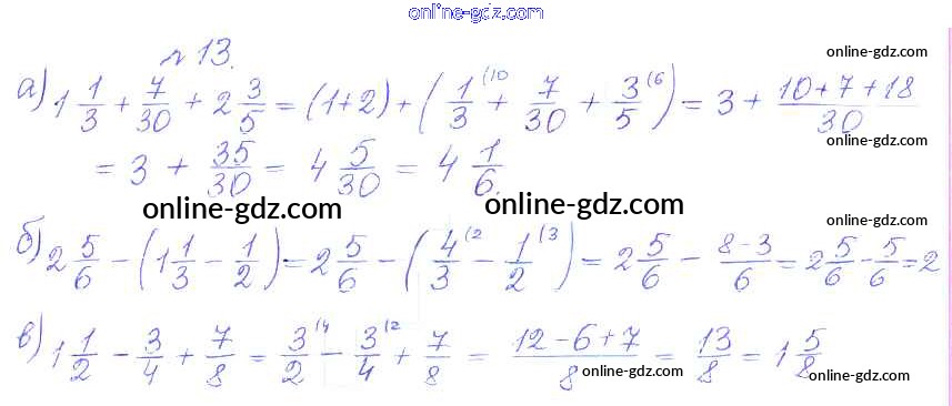 Готовые домашние задания по Математике за 5 класс Дидактические материалы Кузнецова, Минаева Академический школьный учебник 2014 - О-35. Сложение и вычитание смешанных дробей Обучающие работы 13