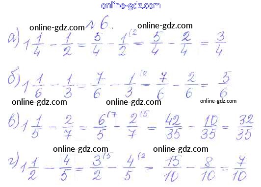 Готовые домашние задания по Математике за 5 класс Дидактические материалы Кузнецова, Минаева Академический школьный учебник 2014 - О-35. Сложение и вычитание смешанных дробей Обучающие работы 6