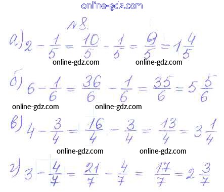Готовые домашние задания по Математике за 5 класс Дидактические материалы Кузнецова, Минаева Академический школьный учебник 2014 - О-35. Сложение и вычитание смешанных дробей Обучающие работы 8