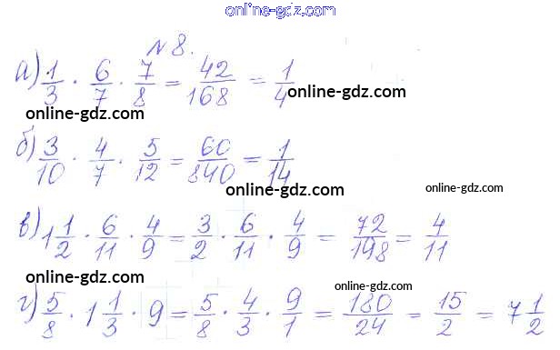 Готовые домашние задания по Математике за 5 класс Дидактические материалы Кузнецова, Минаева Академический школьный учебник 2014 - О-36. Умножение дробей Обучающие работы 8