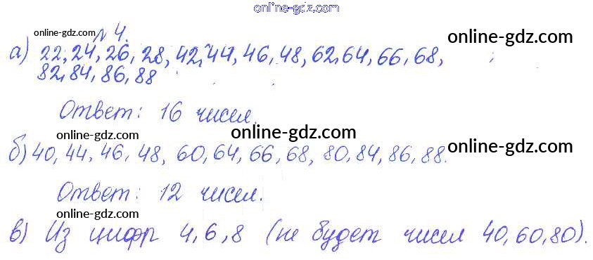 Готовые домашние задания по Математике за 5 класс Дидактические материалы Кузнецова, Минаева Академический школьный учебник 2014 - О-6. Решение комбинаторных задач Обучающие работы 4