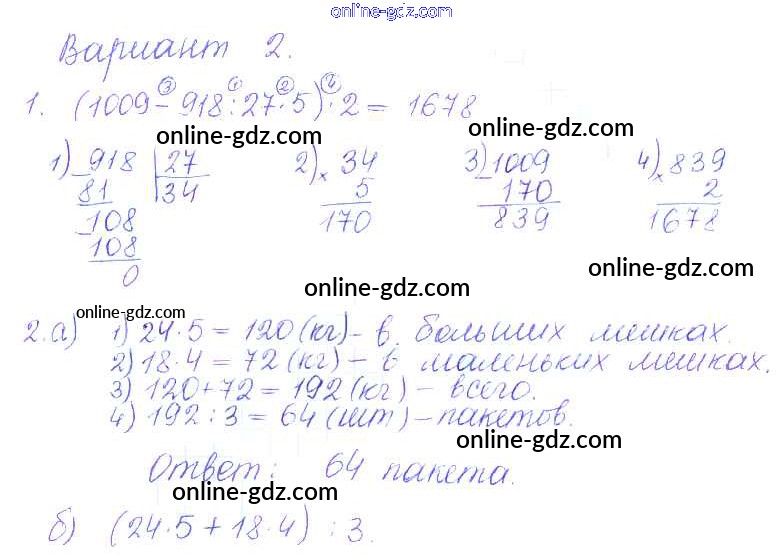 Готовые домашние задания по Математике за 5 класс Дидактические материалы Кузнецова, Минаева Академический школьный учебник 2014 - ПР №11. Порядок действий в вычислениях Проверочные работы вариант-2