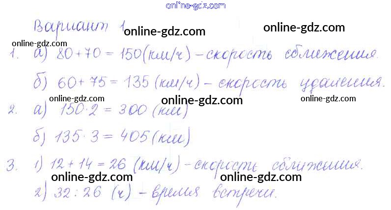 Готовые домашние задания по Математике за 5 класс Дидактические материалы Кузнецова, Минаева Академический школьный учебник 2014 - ПР №13. Задачи на движение Проверочные работы вариант-1