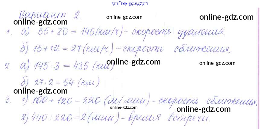 Готовые домашние задания по Математике за 5 класс Дидактические материалы Кузнецова, Минаева Академический школьный учебник 2014 - ПР №13. Задачи на движение Проверочные работы вариант-2