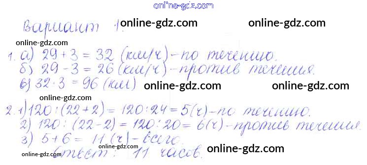 Готовые домашние задания по Математике за 5 класс Дидактические материалы Кузнецова, Минаева Академический школьный учебник 2014 - ПР №14. Задачи на движение по реке Проверочные работы вариант-1