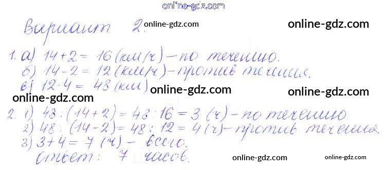 Готовые домашние задания по Математике за 5 класс Дидактические материалы Кузнецова, Минаева Академический школьный учебник 2014 - ПР №14. Задачи на движение по реке Проверочные работы вариант-2