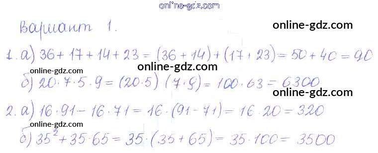 Готовые домашние задания по Математике за 5 класс Дидактические материалы Кузнецова, Минаева Академический школьный учебник 2014 - ПР №15. Использование свойств действий при вычислении Проверочные работы вариант-1