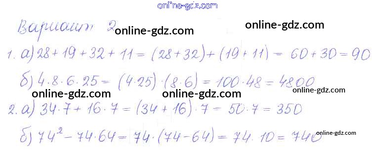 Готовые домашние задания по Математике за 5 класс Дидактические материалы Кузнецова, Минаева Академический школьный учебник 2014 - ПР №15. Использование свойств действий при вычислении Проверочные работы вариант-2