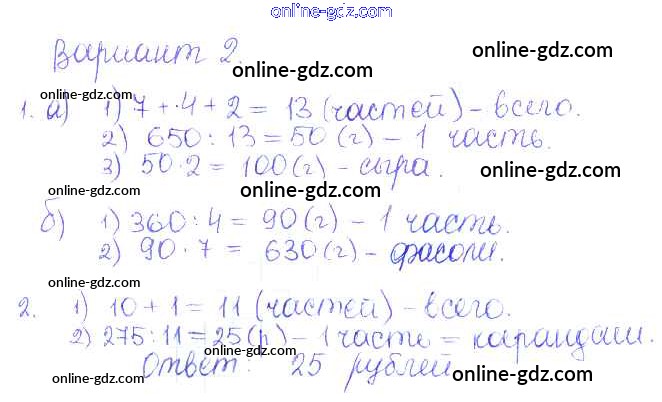 Готовые домашние задания по Математике за 5 класс Дидактические материалы Кузнецова, Минаева Академический школьный учебник 2014 - ПР №16. Решение задач по части Проверочные работы вариант-2