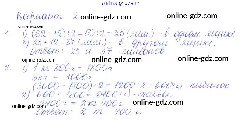 Готовые домашние задания по Математике за 5 класс Дидактические материалы Кузнецова, Минаева Академический школьный учебник 2014 - ПР №17. Решение задач на уравнивание Проверочные работы вариант-2