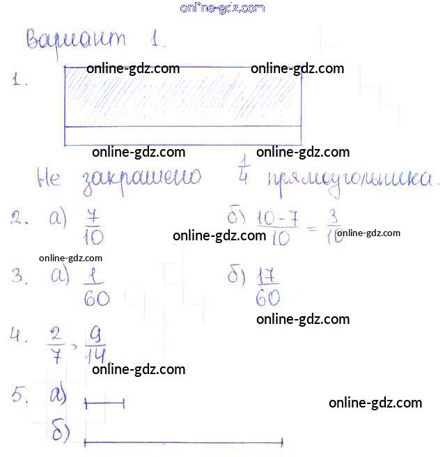 Готовые домашние задания по Математике за 5 класс Дидактические материалы Кузнецова, Минаева Академический школьный учебник 2014 - ПР №24. Что такое дробь Проверочные работы вариант-1