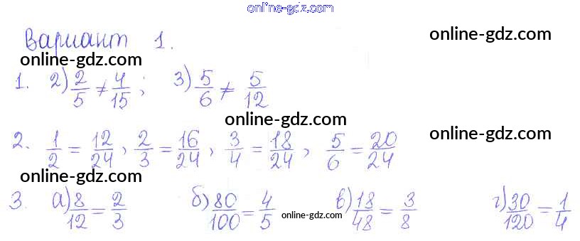 Готовые домашние задания по Математике за 5 класс Дидактические материалы Кузнецова, Минаева Академический школьный учебник 2014 - ПР №26. Основное свойство дроби Проверочные работы вариант-1