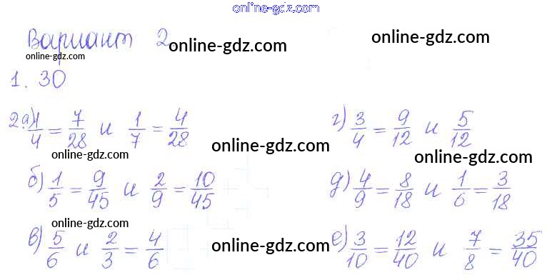 Готовые домашние задания по Математике за 5 класс Дидактические материалы Кузнецова, Минаева Академический школьный учебник 2014 - ПР №27. Приведение дробей к общему знаменателю Проверочные работы вариант-2