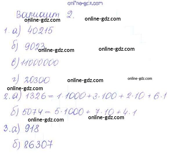 Готовые домашние задания по Математике за 5 класс Дидактические материалы Кузнецова, Минаева Академический школьный учебник 2014 - ПР №3. Запись натуральных чисел Проверочные работы вариант-2
