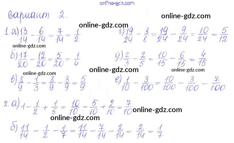 Готовые домашние задания по Математике за 5 класс Дидактические материалы Кузнецова, Минаева Академический школьный учебник 2014 - ПР №31. Вычитание дробей Проверочные работы вариант-2