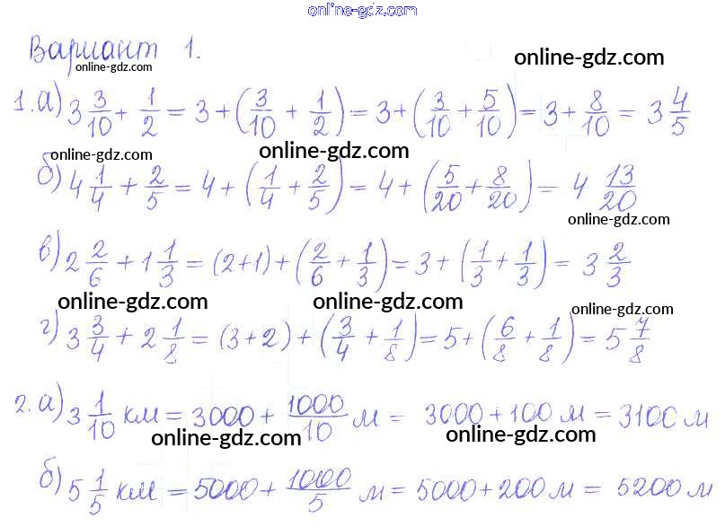 Готовые домашние задания по Математике за 5 класс Дидактические материалы Кузнецова, Минаева Академический школьный учебник 2014 - ПР №33. Сложение смешанных дробей Проверочные работы вариант-1
