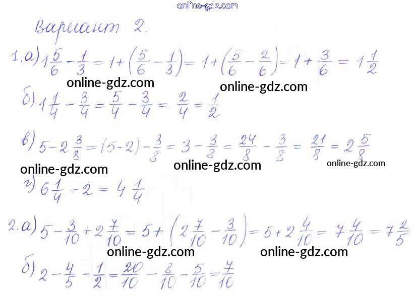 Готовые домашние задания по Математике за 5 класс Дидактические материалы Кузнецова, Минаева Академический школьный учебник 2014 - ПР №34. Вычитание смешанных дробей Проверочные работы вариант-2