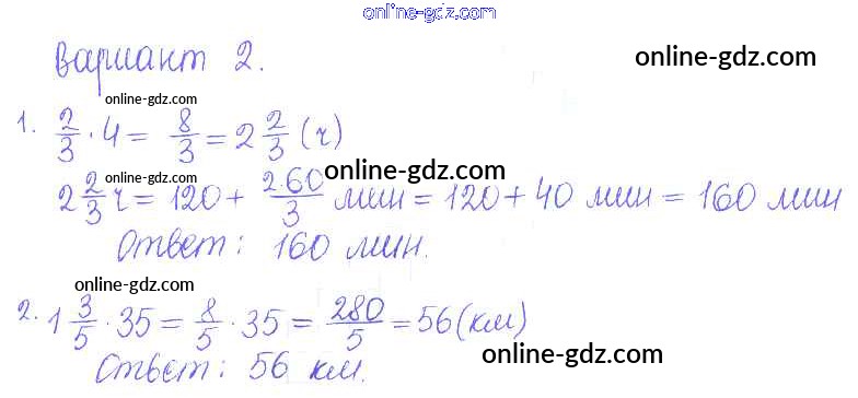 Готовые домашние задания по Математике за 5 класс Дидактические материалы Кузнецова, Минаева Академический школьный учебник 2014 - ПР №36. Решение задач Проверочные работы вариант-2