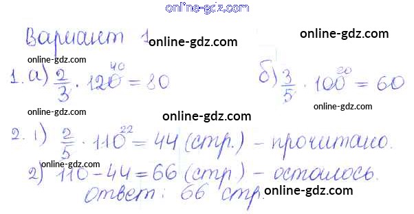 Готовые домашние задания по Математике за 5 класс Дидактические материалы Кузнецова, Минаева Академический школьный учебник 2014 - ПР №39. Нахождение части целого Проверочные работы вариант-1