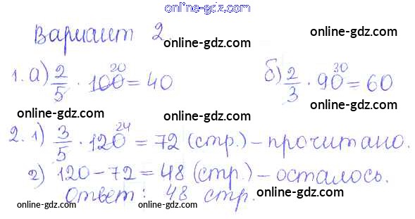 Готовые домашние задания по Математике за 5 класс Дидактические материалы Кузнецова, Минаева Академический школьный учебник 2014 - ПР №39. Нахождение части целого Проверочные работы вариант-2
