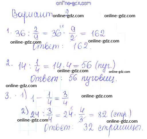 Готовые домашние задания по Математике за 5 класс Дидактические материалы Кузнецова, Минаева Академический школьный учебник 2014 - ПР №40. Нахождение целого по его части Проверочные работы вариант-2