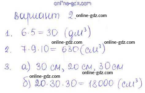 Готовые домашние задания по Математике за 5 класс Дидактические материалы Кузнецова, Минаева Академический школьный учебник 2014 - ПР №43. Объём Проверочные работы вариант-2