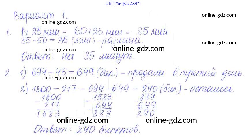 Готовые домашние задания по Математике за 5 класс Дидактические материалы Кузнецова, Минаева Академический школьный учебник 2014 - ПР №7. Сложение и вычитание - решение задач Проверочные работы вариант-1