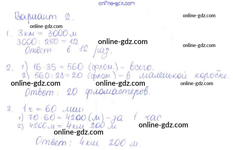 Готовые домашние задания по Математике за 5 класс Дидактические материалы Кузнецова, Минаева Академический школьный учебник 2014 - ПР №9. Умножение и деление - решение задач Проверочные работы вариант-2