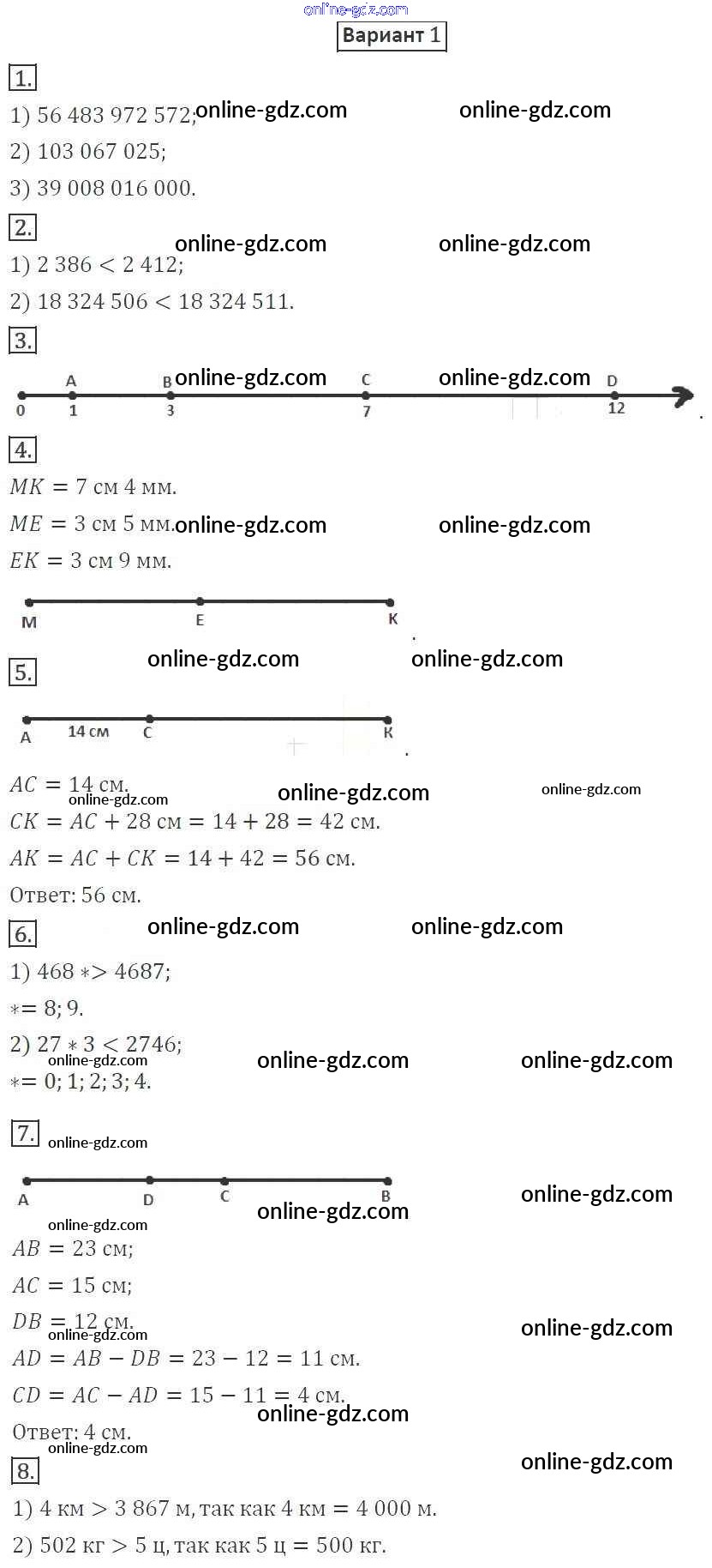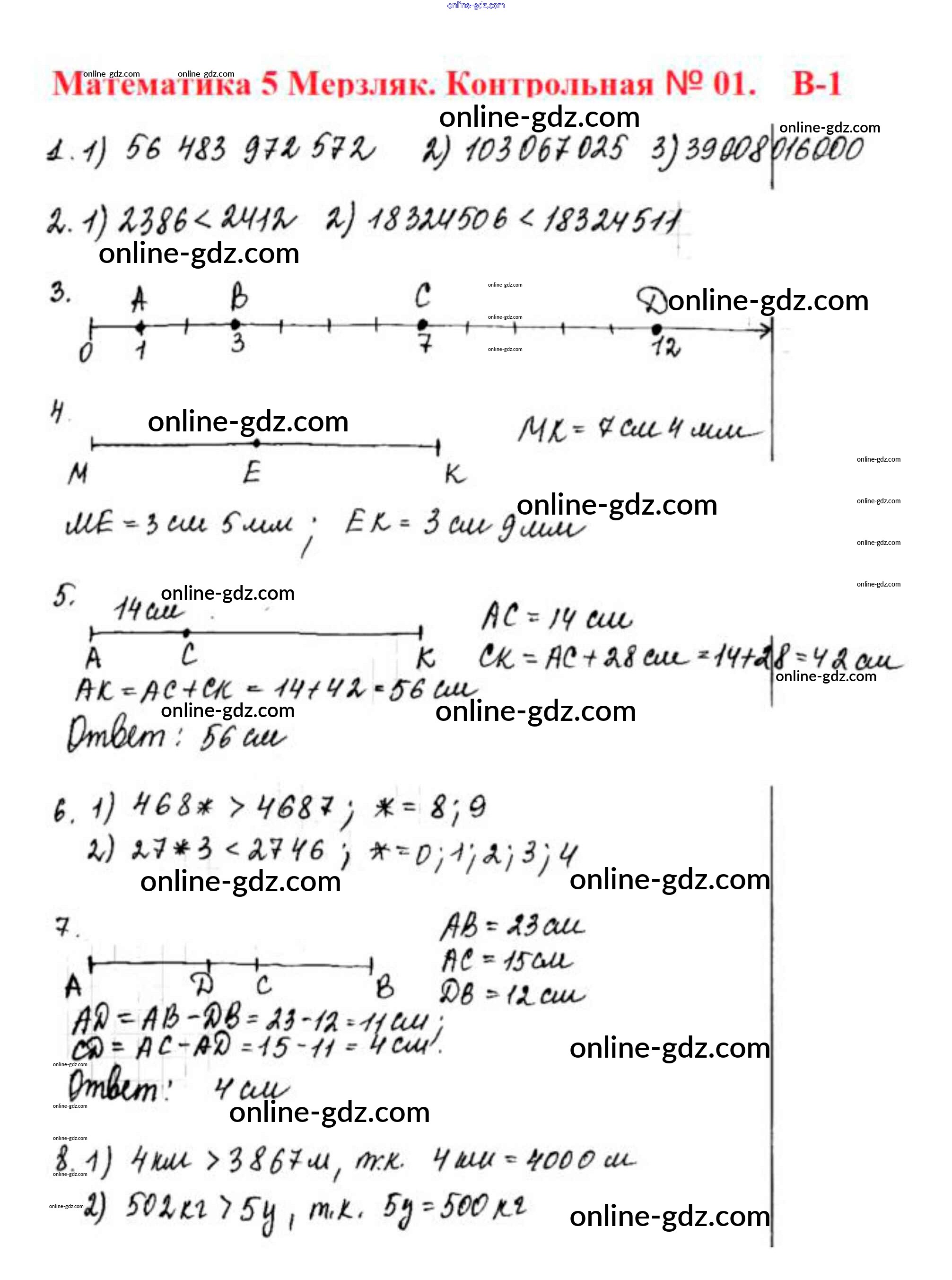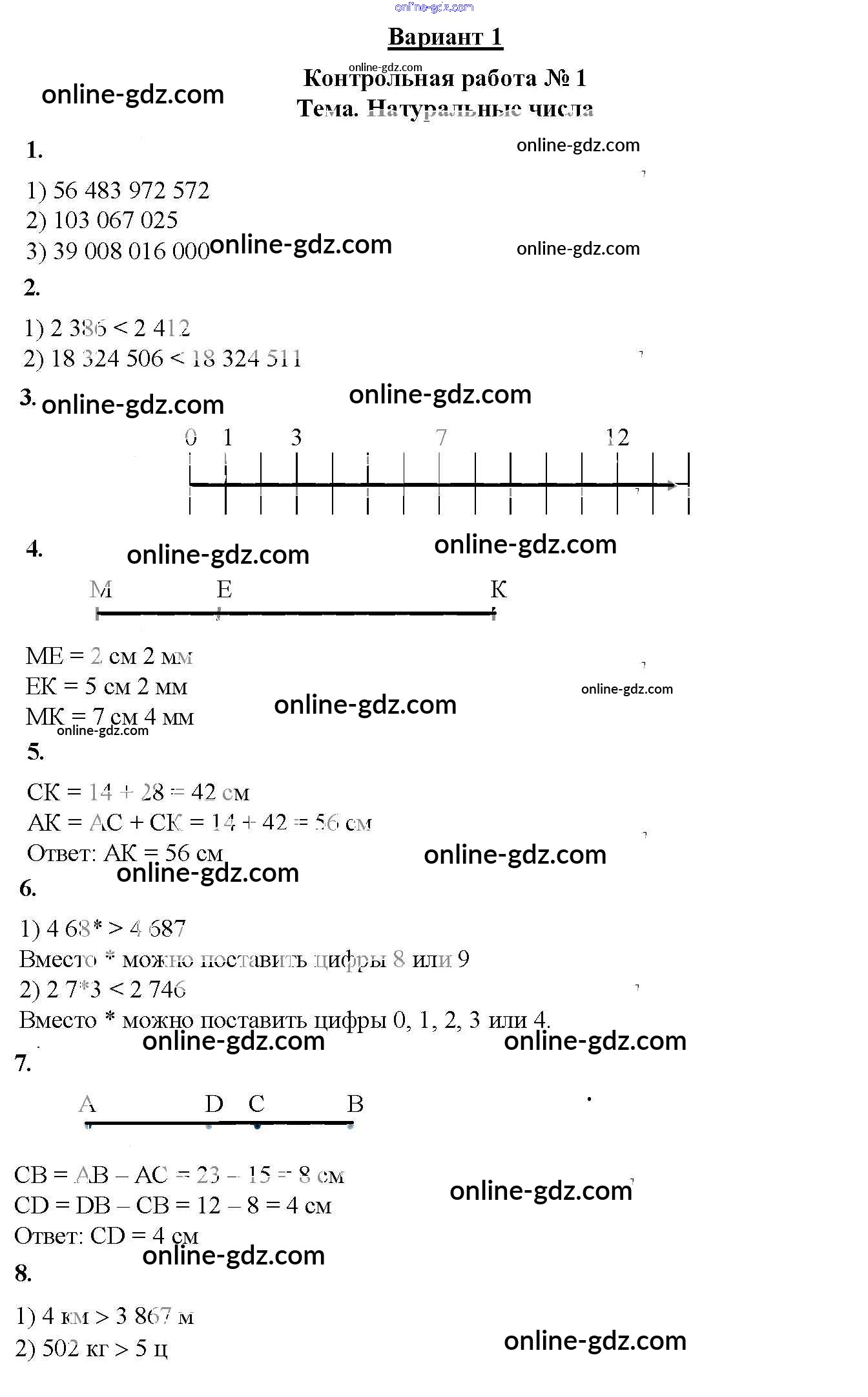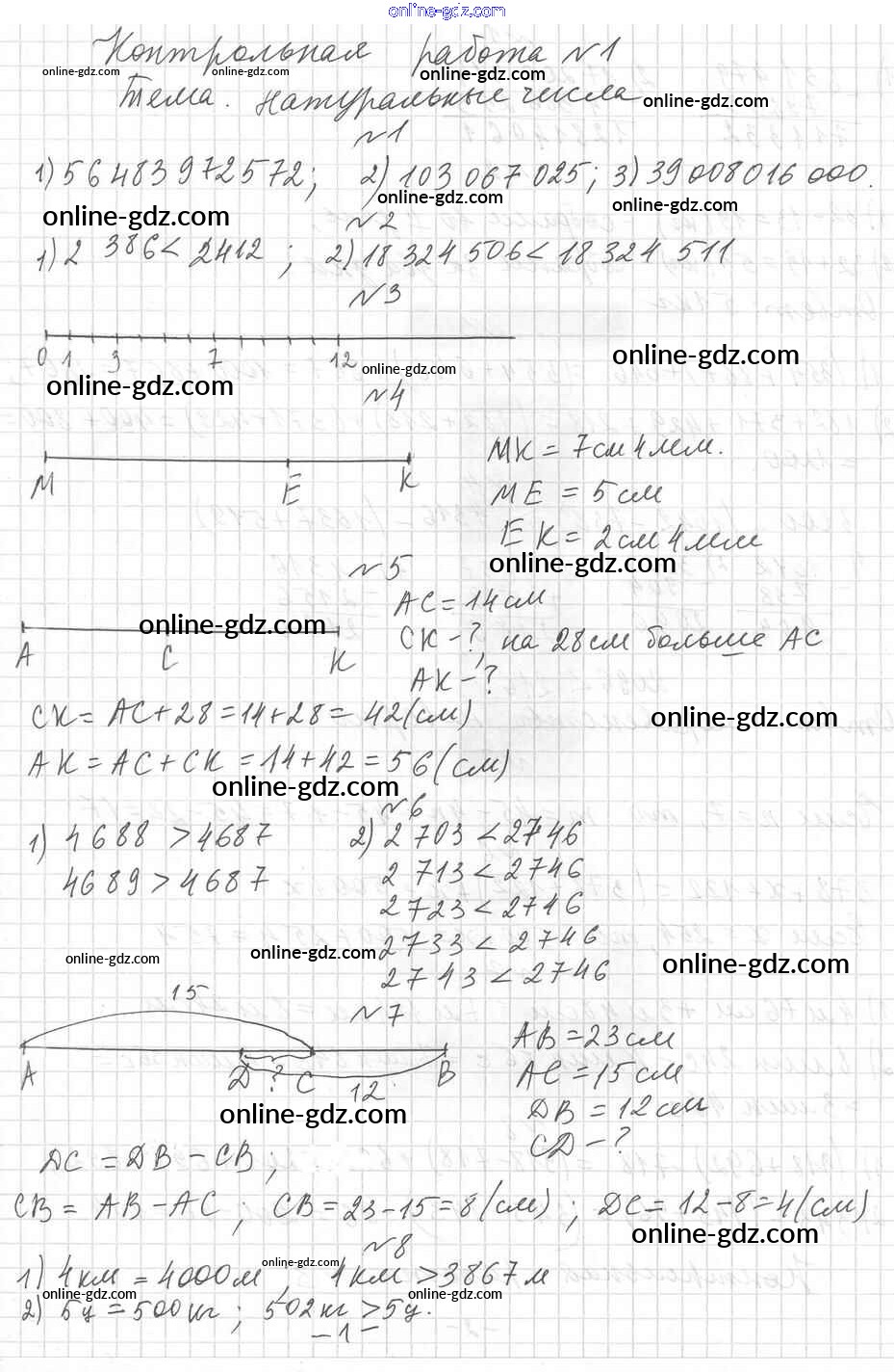 Готовые домашние задания по Математике за 5 класс Дидактические материалы Мерзляк, Полонский Алгоритм успеха 2017 - КР №1. Натуральные числа Контрольные работы вариант 1