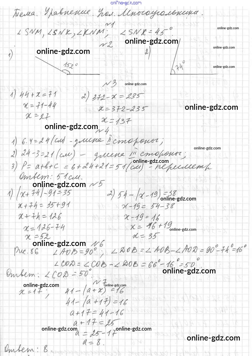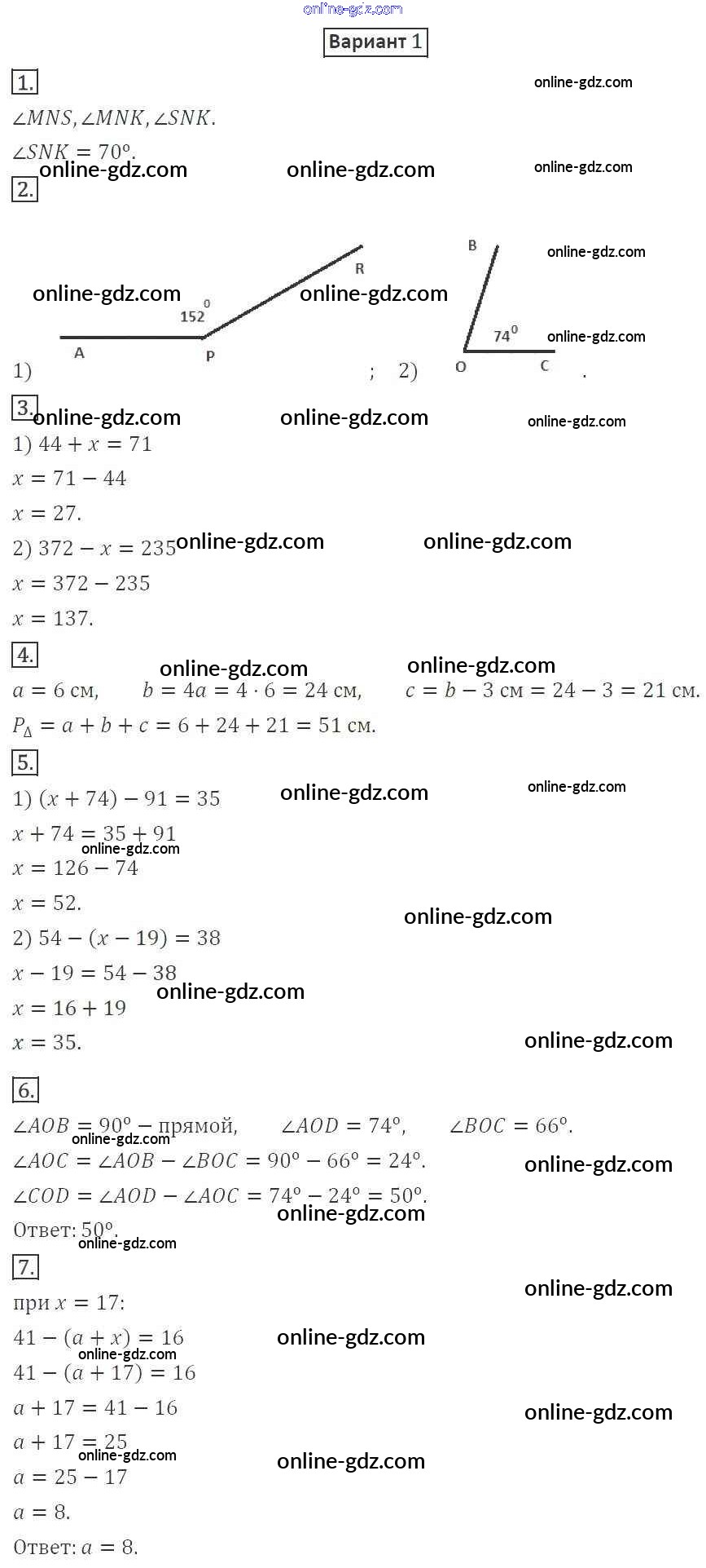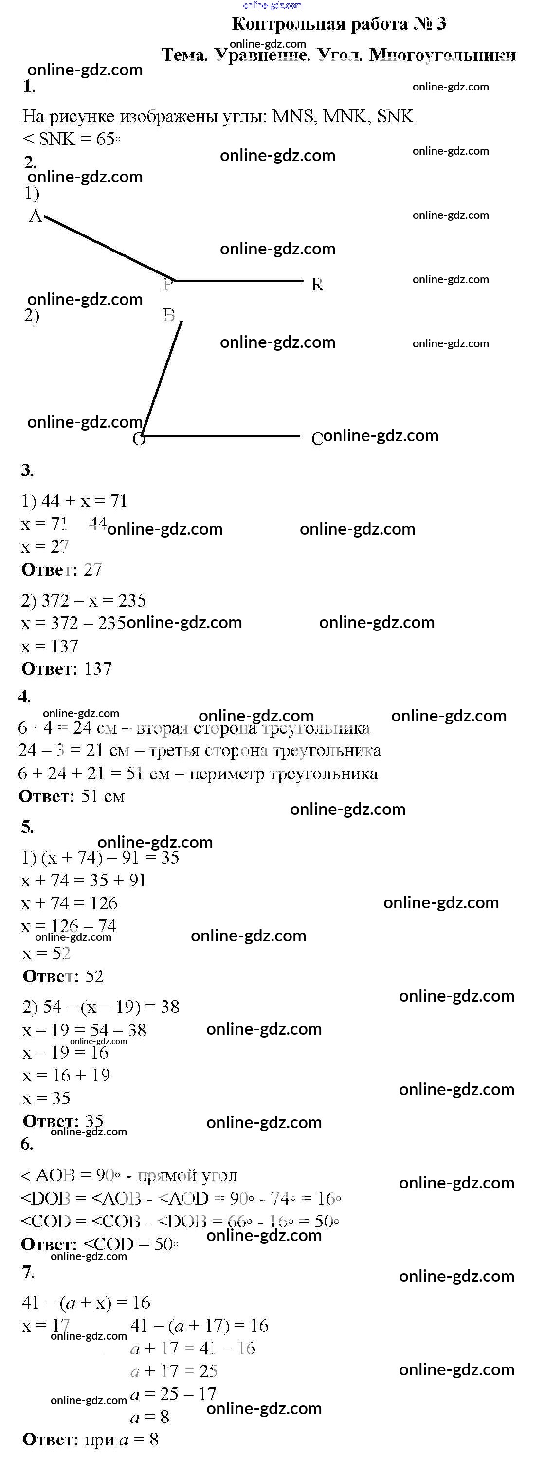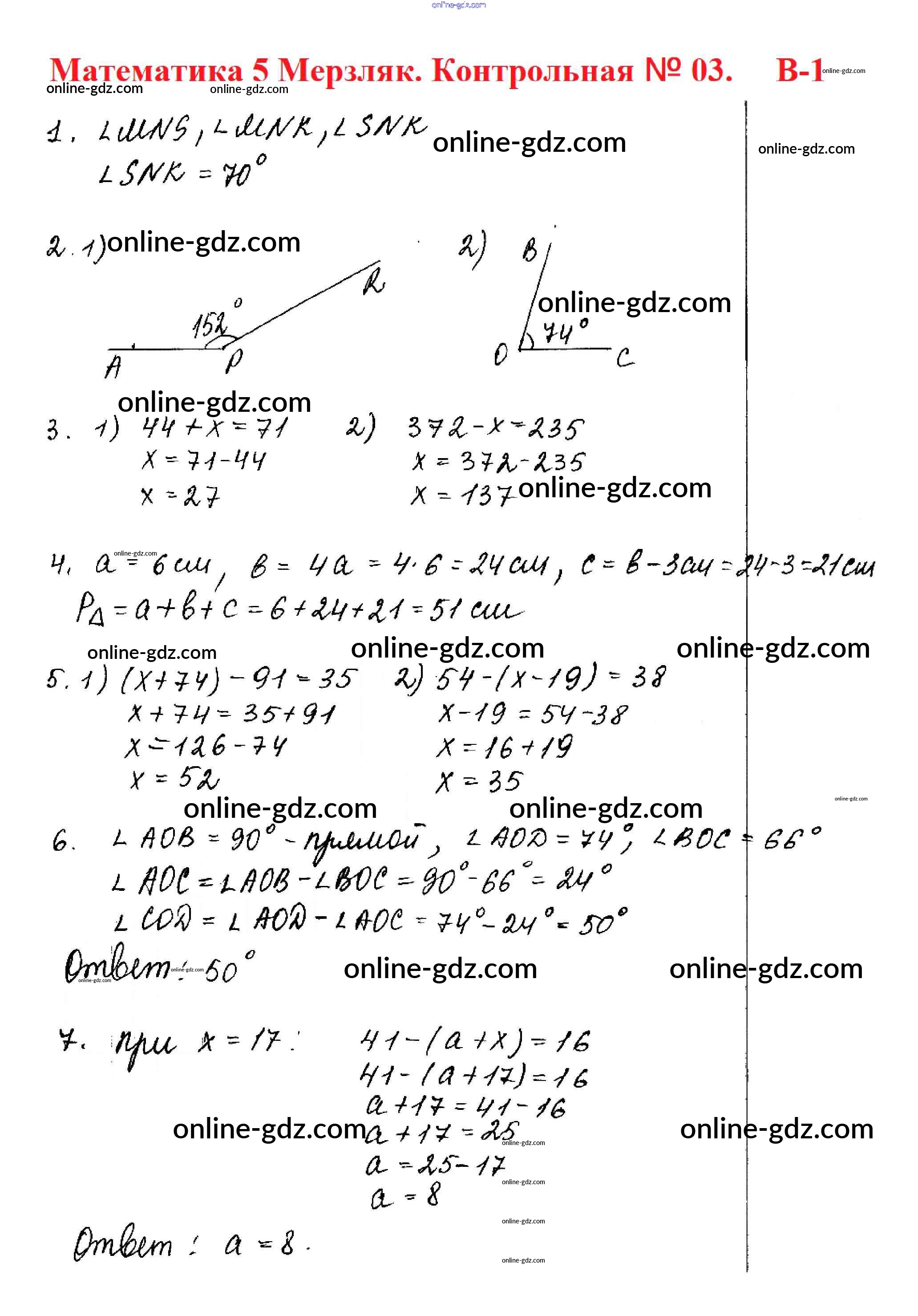Готовые домашние задания по Математике за 5 класс Дидактические материалы Мерзляк, Полонский Алгоритм успеха 2017 - КР №3. Уравнение. Угол. Многоугольники Контрольные работы вариант 1