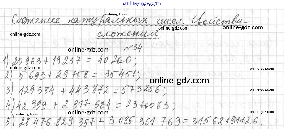 Готовые домашние задания по Математике за 5 класс Дидактические материалы Мерзляк, Полонский Алгоритм успеха 2017 - Вариант 1 Упражнения 34